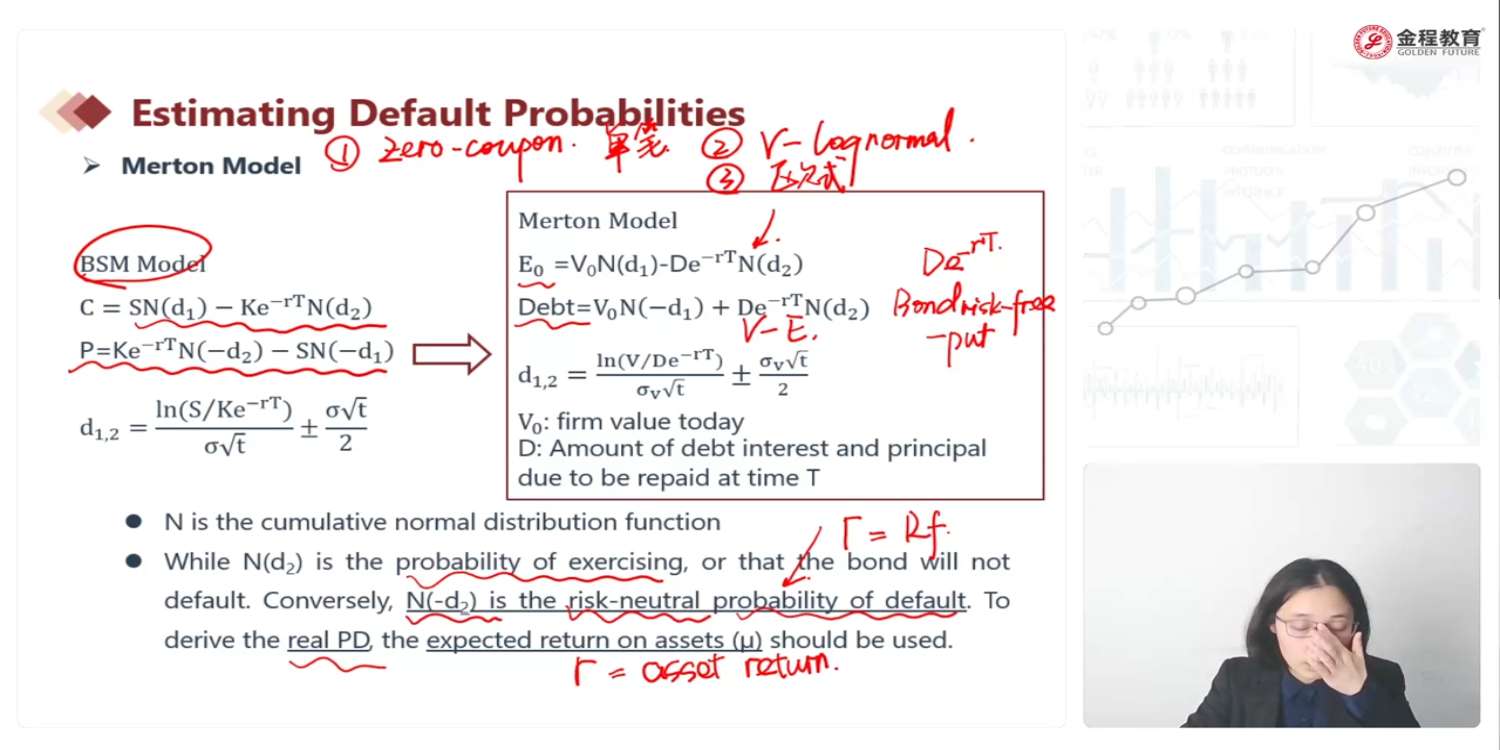 老师,请问Debt估值后面一项De^(-rT)N(d2)如何得到的?