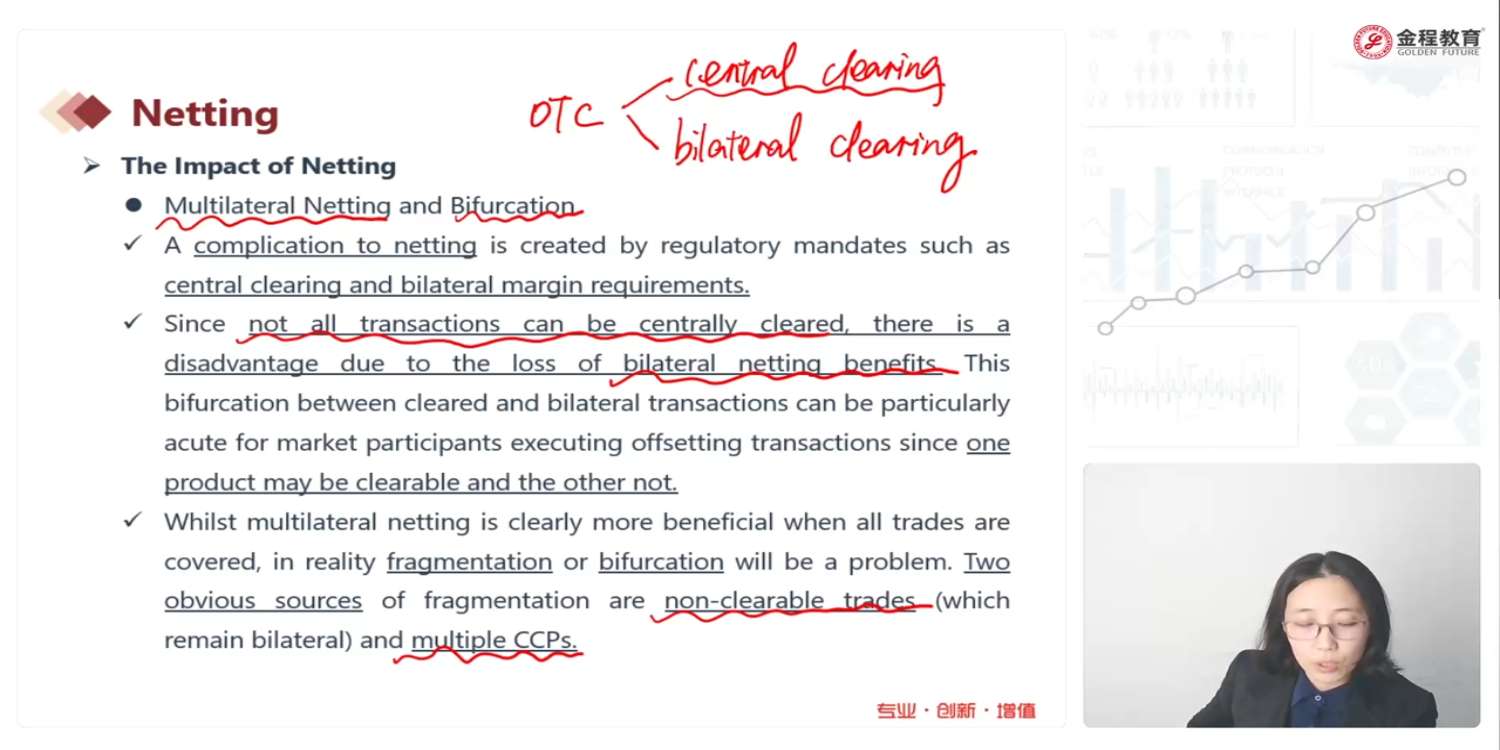 看这里的讲解,netting是一定需要中央清算才可以实施对吧?可这个视频一开头老师就说ISDA主协议规定了netting相关内容,主要用于不能中央清算的场外交易,那这里一个说要中央清算,一个说不能中央清算,是不是有点冲突矛盾呀?