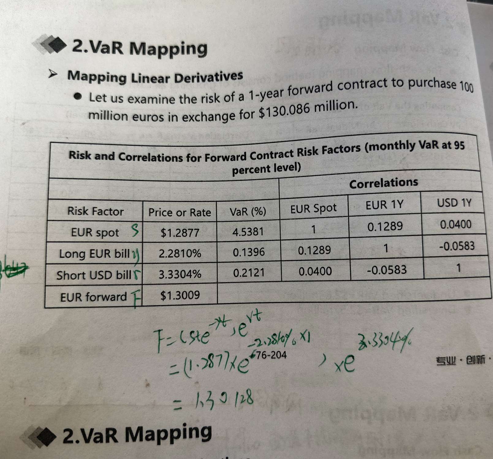 老师请问一下线性衍生品mapping EUR forward $1.3009是怎么算出来的,我用公式算出来价格是1.30128,不知道是不是自己理解有问题