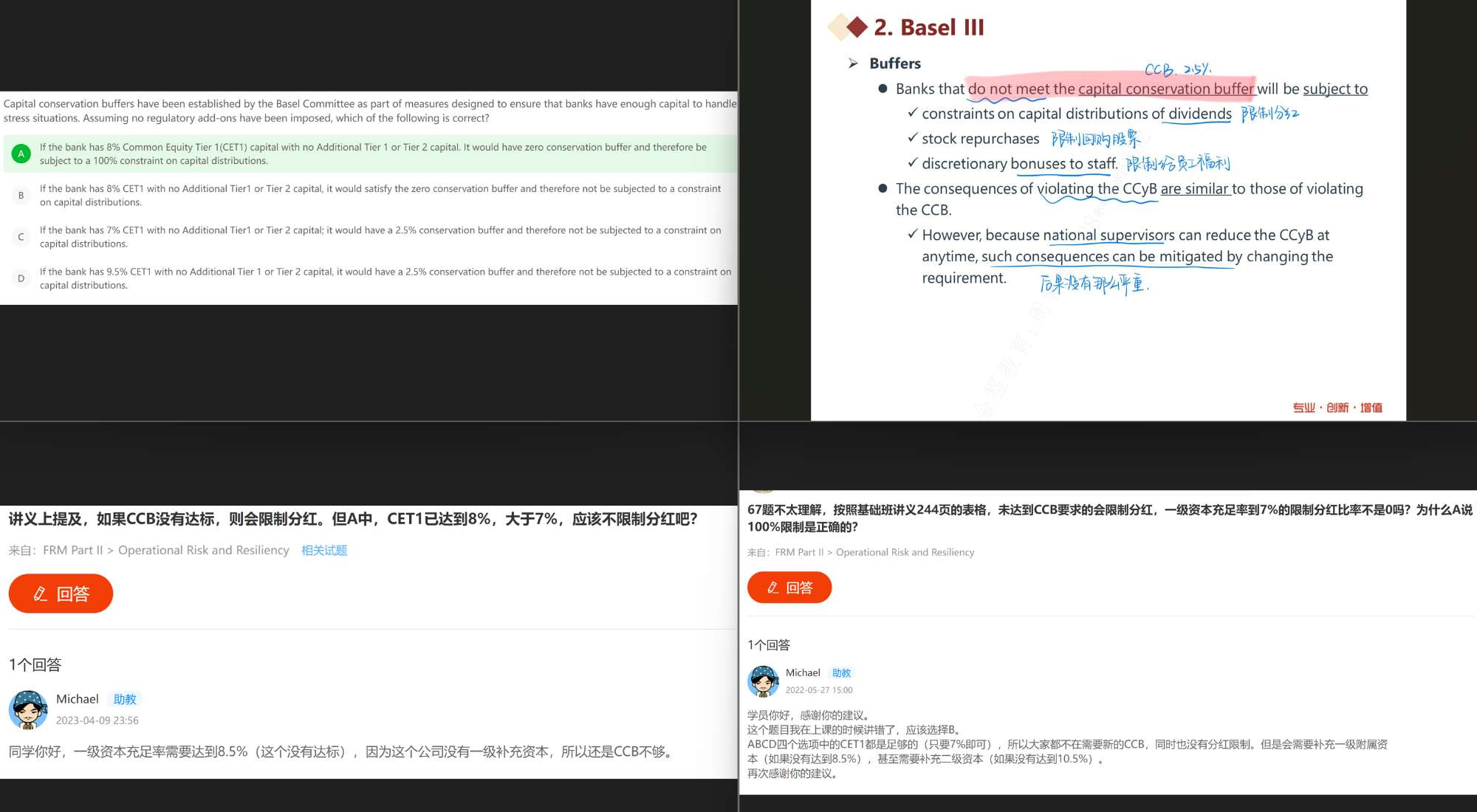 包含FRM二级传统在线课程、通关课程及试题相关提问答疑;