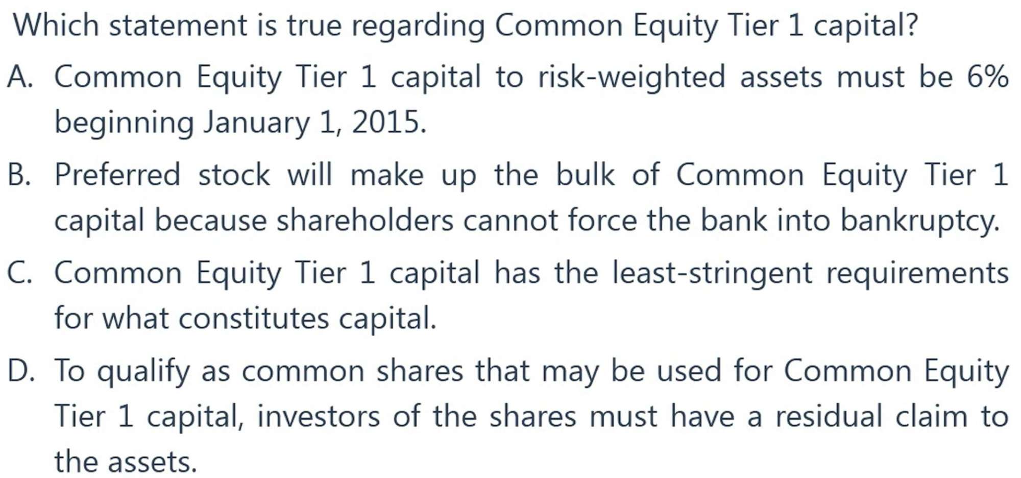 这道题到底选哪一个呢?而且我想问 1.那个zero conservation buffer是说因为8%>7%所以这个CCB就是0了?也就不用交了? 2.后面那句话说对于分红有限制,我想问这个讲义上说的是 如果CCB不满足的话巴塞尔委员会会对分红有限制,但是其他T1和total capital没满足,这个还需要限制吗?也就是A选项咋说都是前后矛盾的,一个对另一个就不对