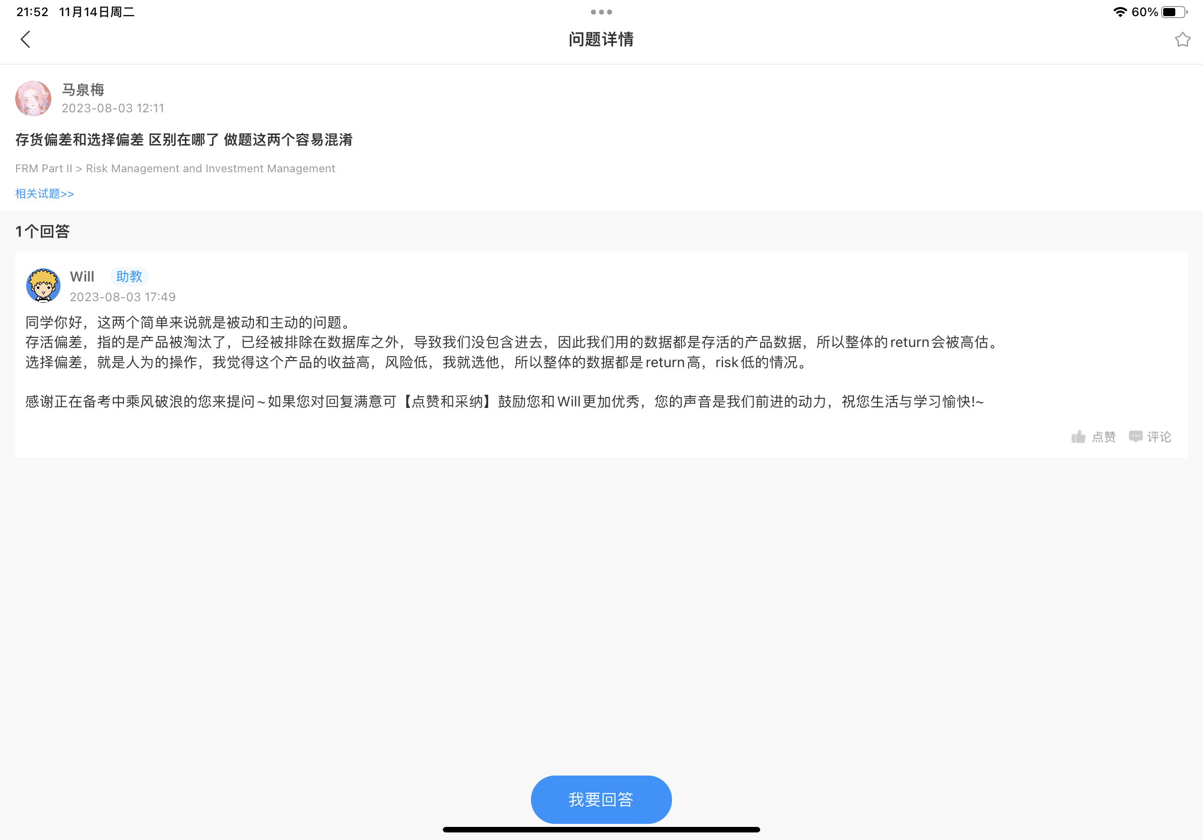 包含FRM二级传统在线课程、通关课程及试题相关提问答疑;