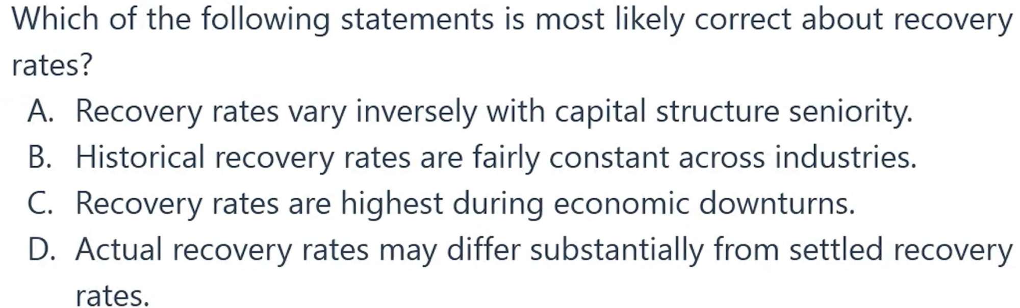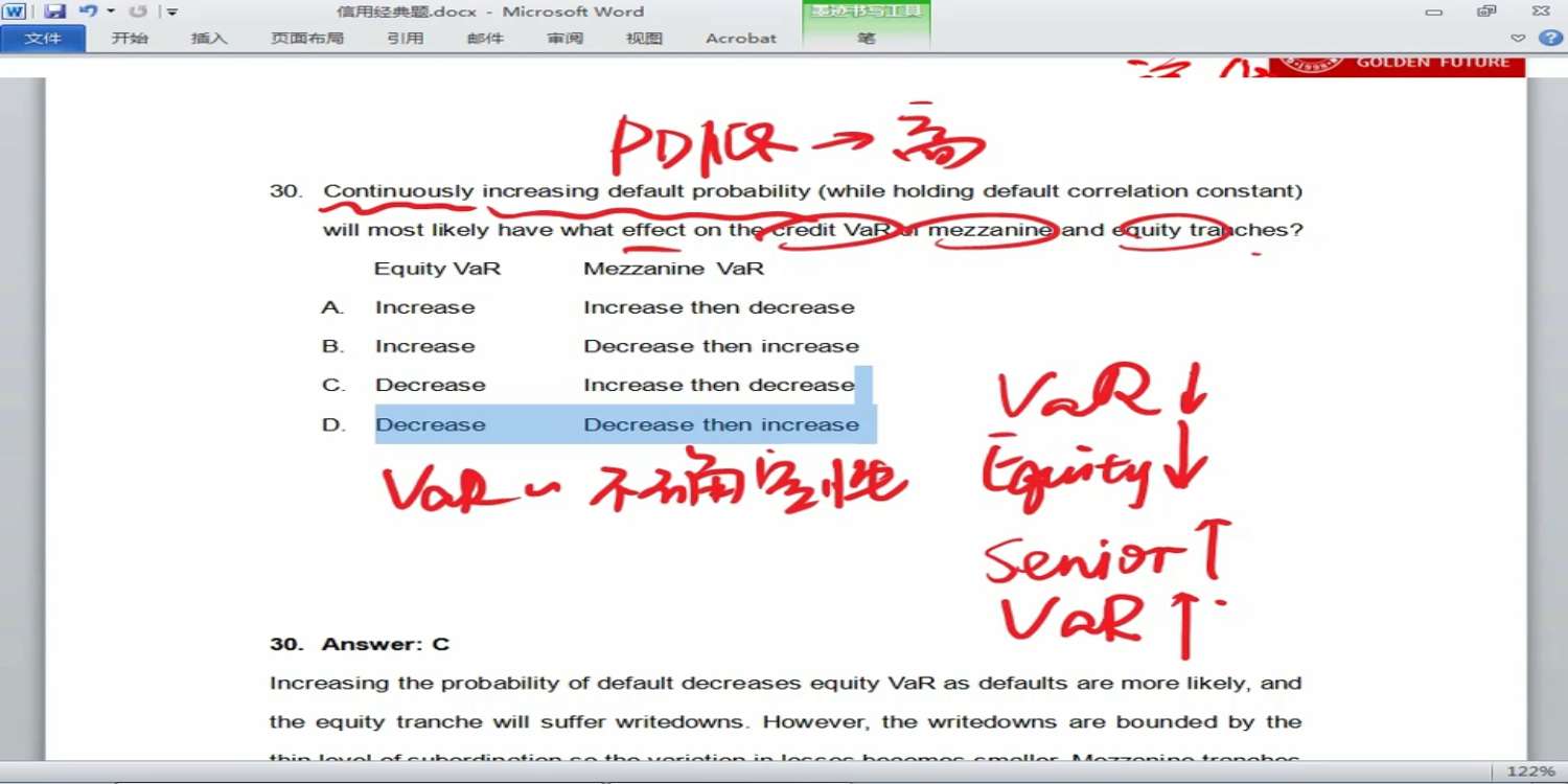 老师好,这道题是问这个公司前六个月的违约率与后六个月的违约率,所以前六个月违约就有三种情况(债券1违约、债券2违约,债券1和债券2同时违约);后六个月违约就有债券1不违约、债券2前六个月不违约,后六个月违约。我看解题目中,直接用债券1的PD代表了公司的违约率,同时用债券1半年的违约率和债券2一年期违约率,算出后六个月的违约率,不太理解,还请老师再帮忙解释下,谢谢。