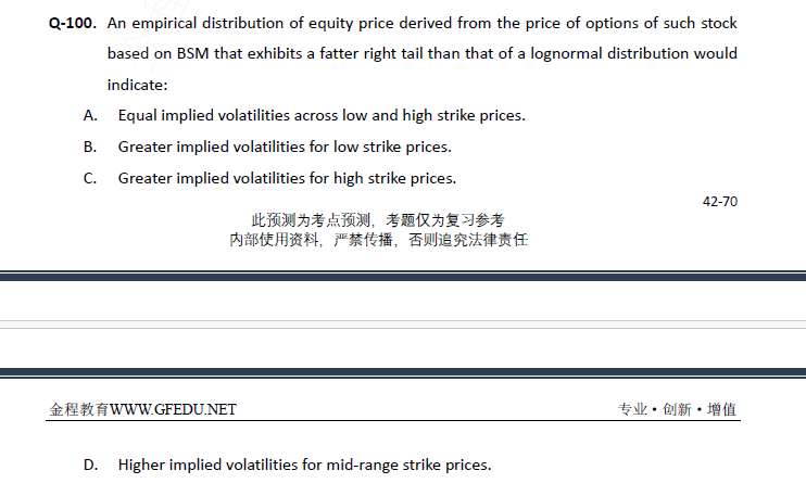 想问下老师,equity option不应该是low strike price对应的higher volatility么,为什么答案是C不是B呢