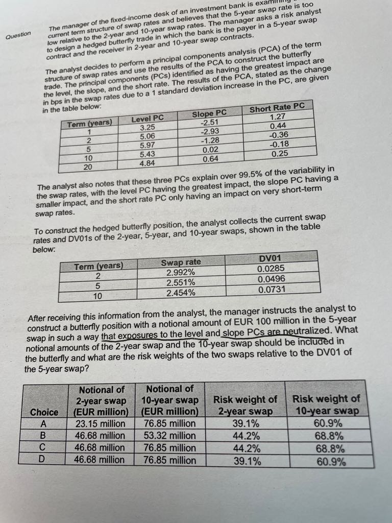 这题能不能讲讲老师?DVO1反映的不是利率的变化带来的价格变化么?这里面给的各年的swap rate 完全没用上啊?再有,是不是看到DV01都可以直接除100调整