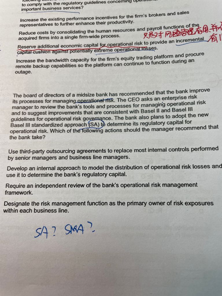 这个题目里为何说巴3了还是SA?操作风险巴3不是已经用SMA了么?
