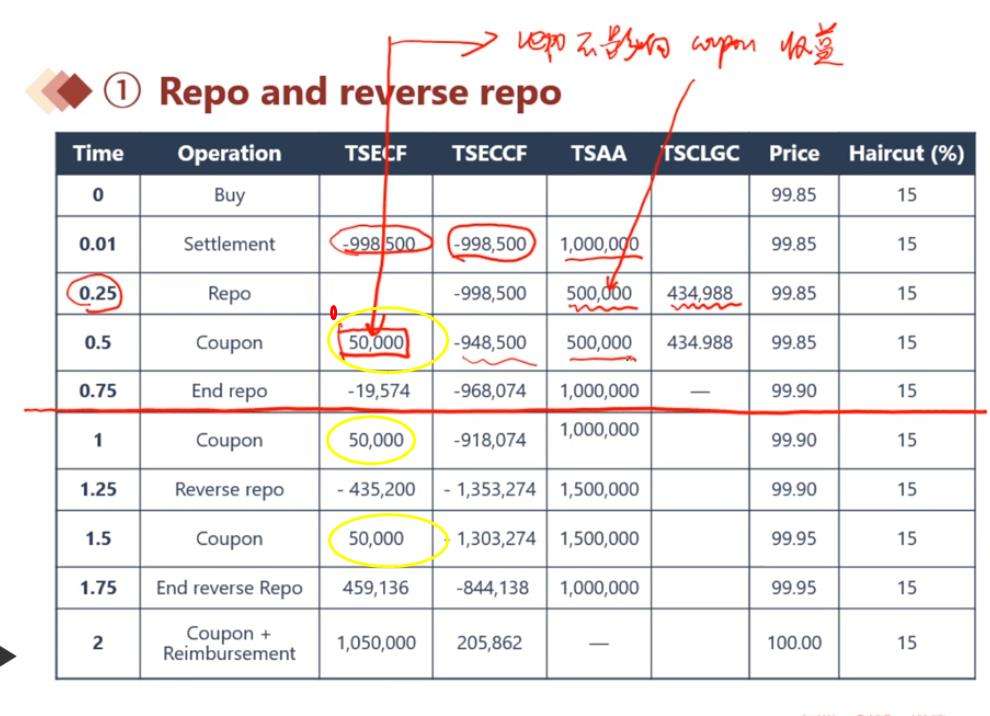 repo一方要钱,一方要券,1、那么券是A真实出售给B么?还是不转移所有权?2、如果如图,每次债券收益还归原持有人,那为什么invoice price计算的时候要考虑AI?还要把出售前跟出售后分开?这不是有点矛盾么?