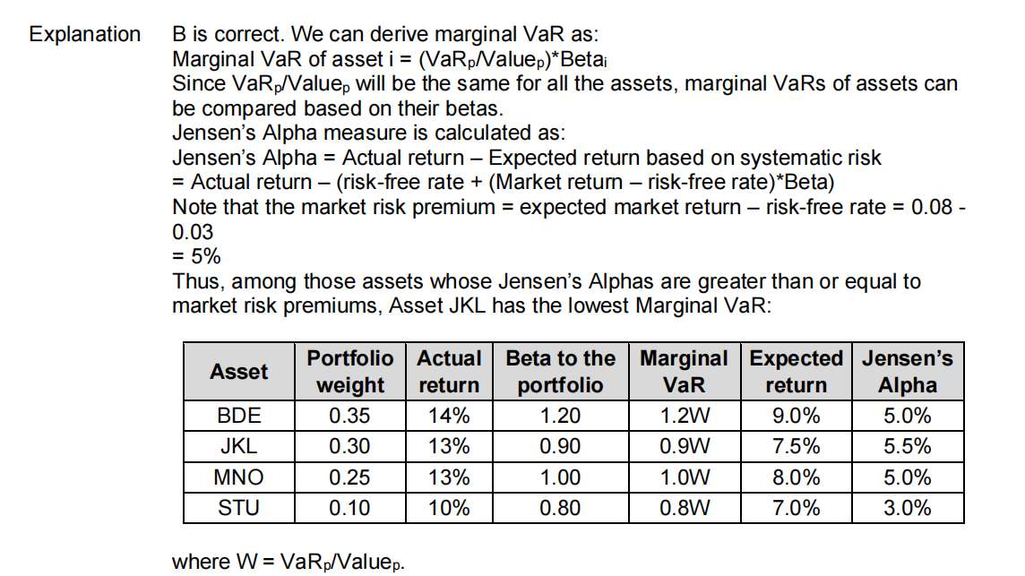 老师,这个题为什么说VaRp/Valuep will be the same for all the assets?