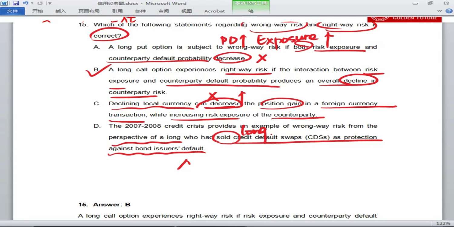 查看试题 已回答老师好,这道题目D选项为什么不能是压力情况下开发EWI,一定是正常情况下。个人理解是不是流动性风险计量应该同时在压力和正常情境下均做出相关的预警,特别是资金紧急应急计划的情景指标。不是很理解,谢谢老师。