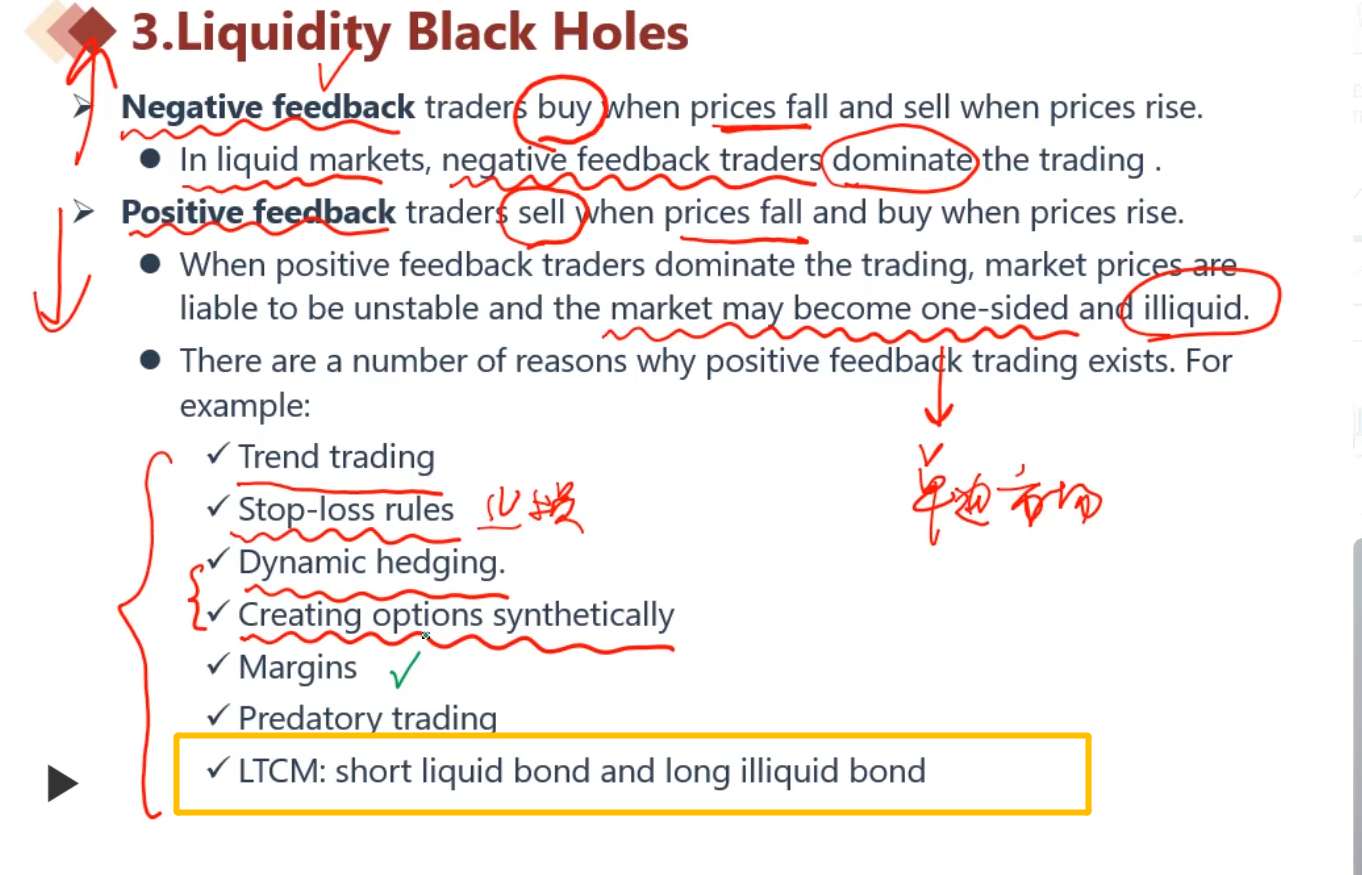 老师好,这里能不能展开说下LTCM的为啥卖掉流动性好,买入流动性差的债券就是正向反馈?。。我理解是,流动性好则补偿RP↓则价格高P↑。流动性差则定价低P↓。那么,卖掉价格高的、买入价格低的,咋和正向反馈挂钩的