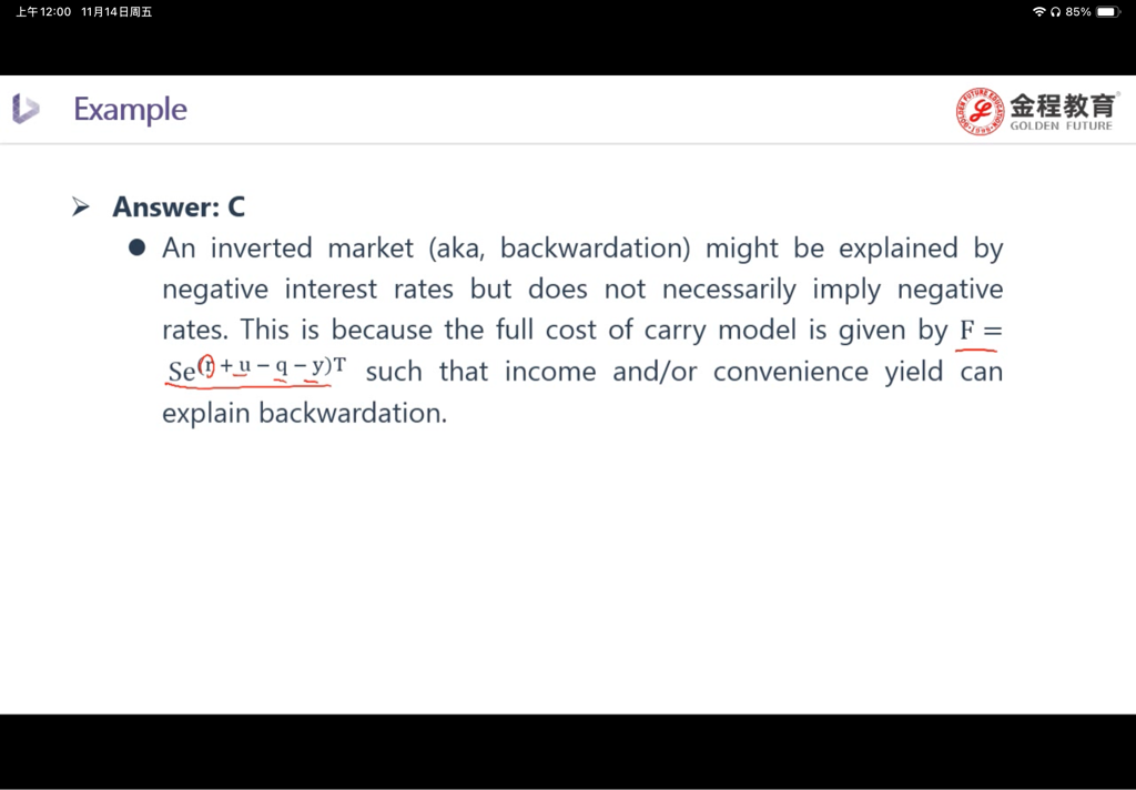 1.Basis=SP-FP这个公式是哪里讲到的? 2. C选项最后那个公式(r可能减去分红)是哪里讲到的? 3. D 选项Future price逐渐收敛于现价,收敛通常是哪个单词表达?