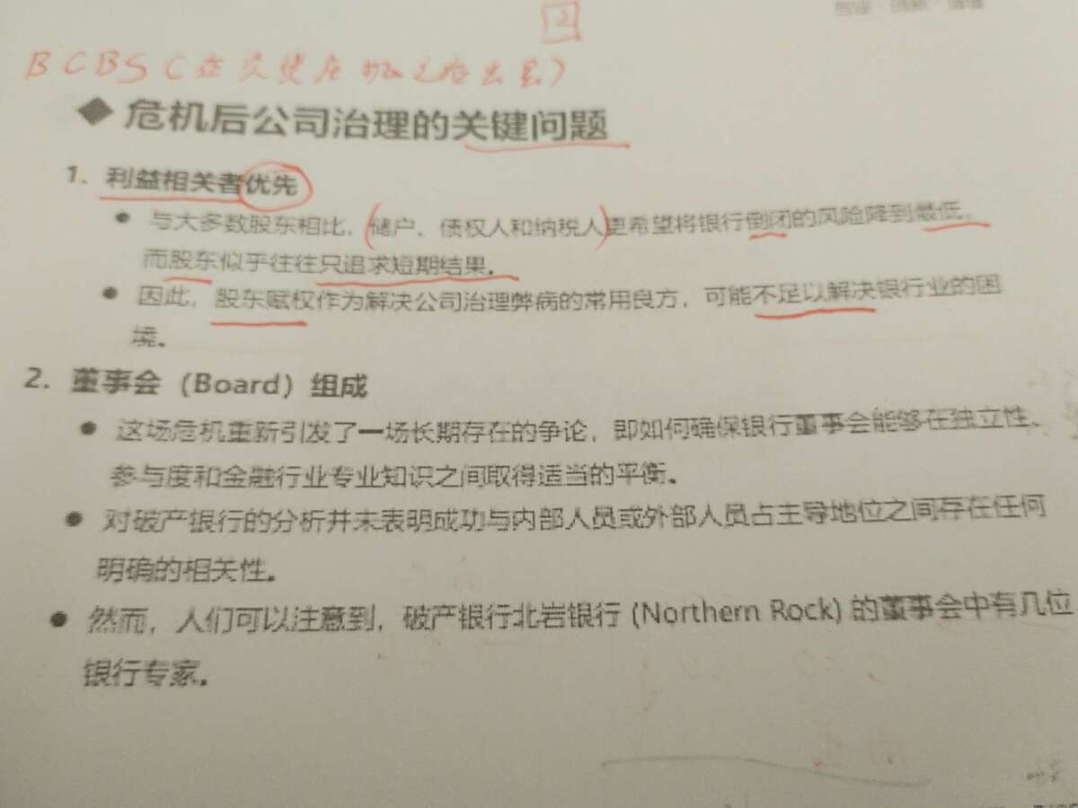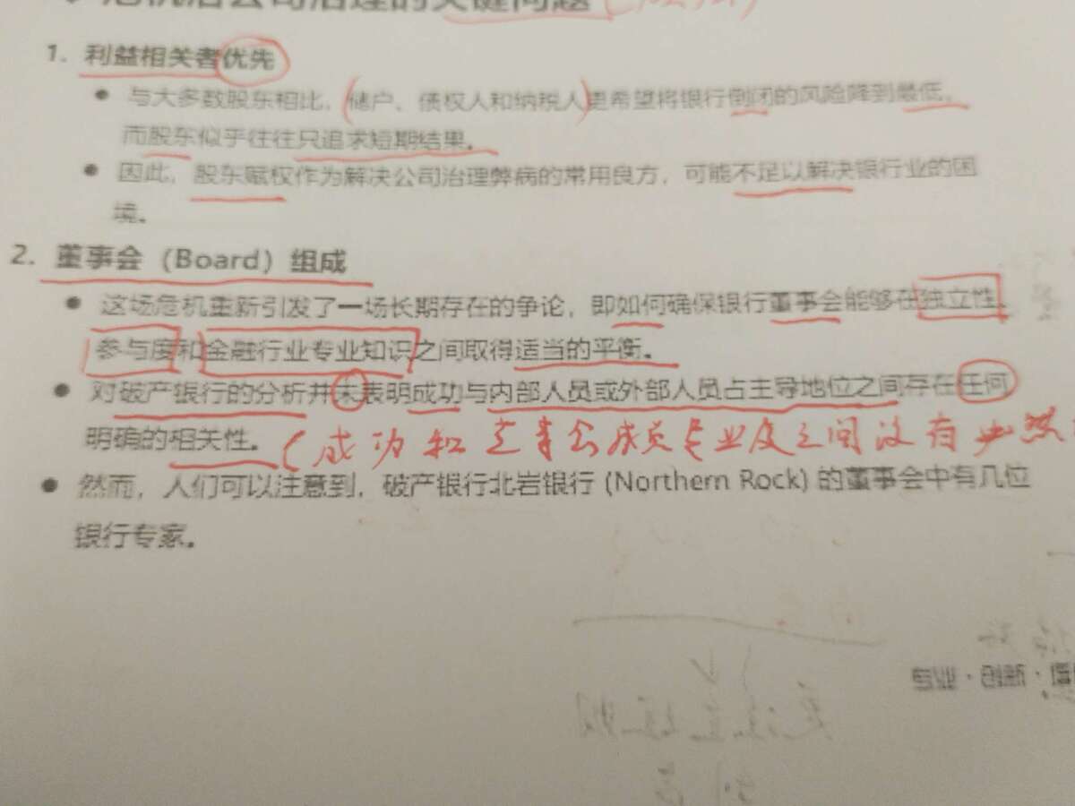 老师这里讲的怎么跟汉化版讲义的不一样,老师说储户债权人纳税人追求短期结果,但是汉化讲义说的是股东追求短期结果,老师说正确做法是股东赋权,但是汉化版讲义表达的意思好像是对股东赋权的一种不看好的态度