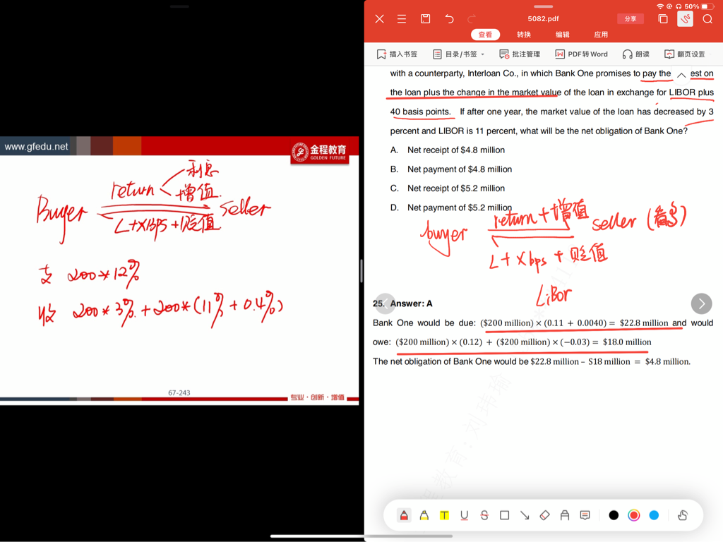 左边老师讲题,右边是经典题的参考答案。两者的计算方式不一样,算出来的收和支是不同的,虽然净额相同。请问考试的时候会分开问吗?比如单独问收、支?那么该按照哪个方式?