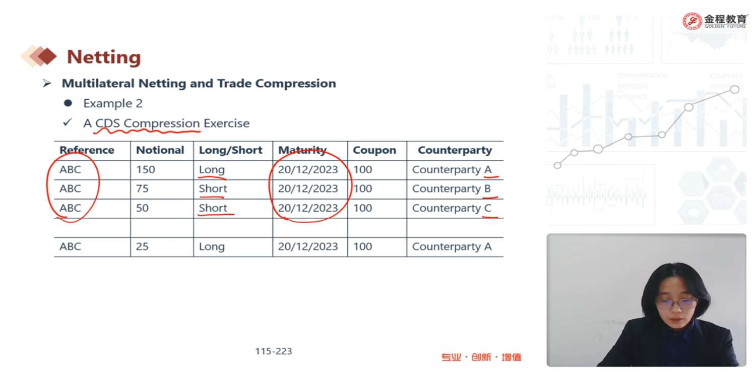 还有一个问题,ABC是指一个交易者对把,我就叫他D,D分别与A\B\C做交易,能直接netting吗?就像前茅P114,C也无法将分别与A/B交易的进一步压缩把?