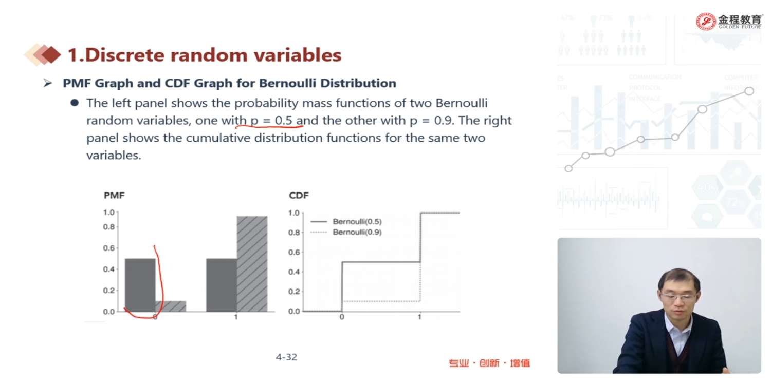 左边的不是概率密度函数吧 姚老师好像老是喜欢把PMF和PDF的中文叫错