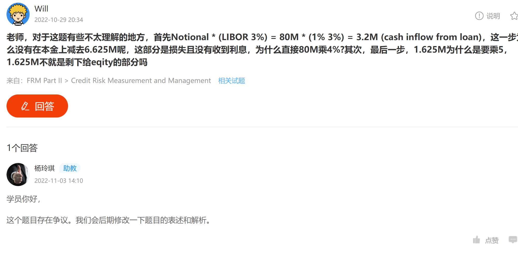 FRM问答包含在线课程、FMR通关课程、FRM试题等所有FRM相关问题,每个问题老师均会在24小时内给出答疑回复哦!