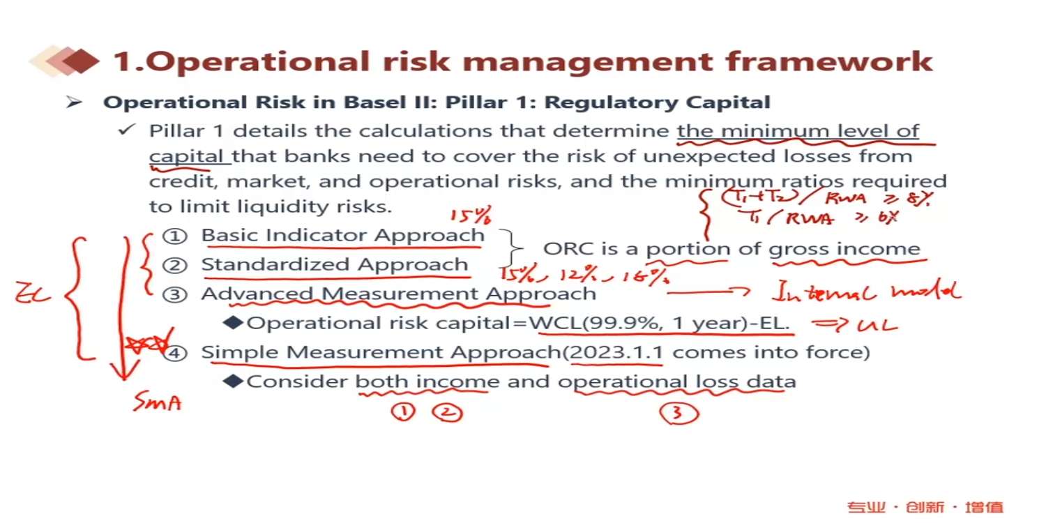 - 不理解这里为什么Risk Chaampions & Business-Line Managers 负责monitor Operational Risk Function Operational Risk Committee 负责act 难道不应该是一线业务人员负责act,然后上一级负责monitor更贴切嘛