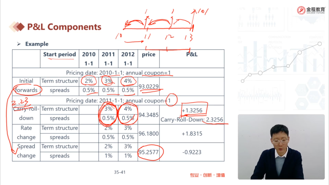 请问老师,这里carry roll down是的期限变成2011-2012,2012-2013,加了1块coupon是哪一段的?为什么不是这两段加2块coupon?