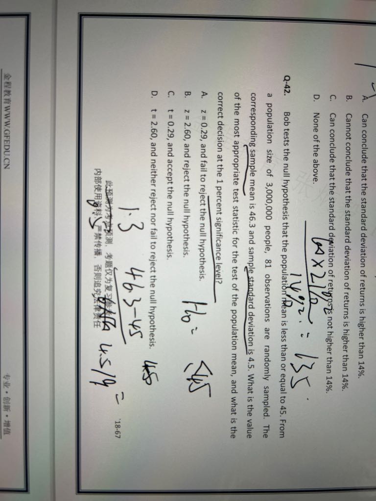 这道题为什么用z检验 以及D选项什么意思 他不是告诉我们样本标准差吗 不应该用t检验吗