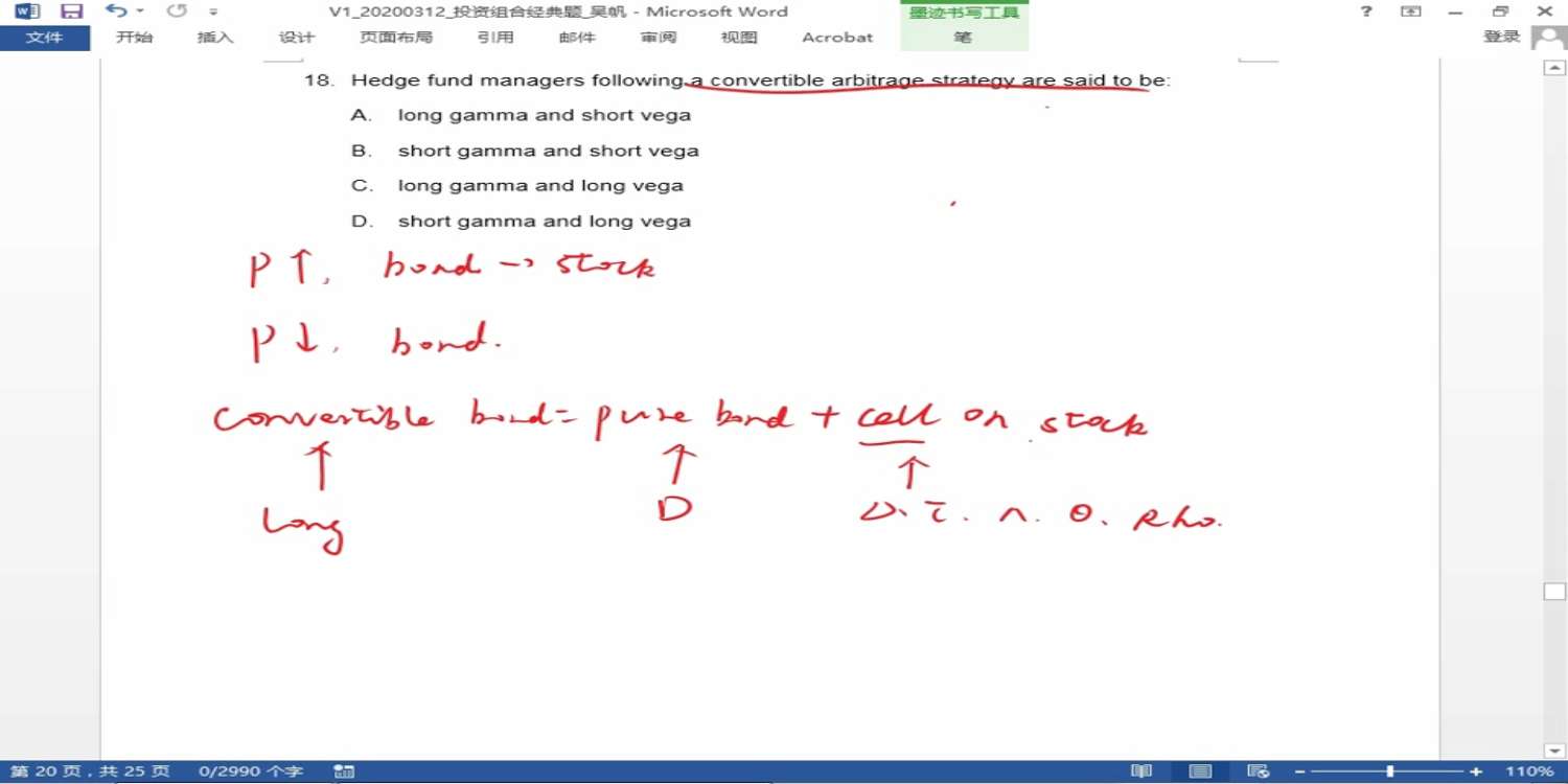 这个18题老师的讲解和标准答案差别太大了。标准答案是说shorting stock using delta headge ratio. because they are exposed to changes in the hedge ratio, they are said to be long gamma. They are also exposed to changes in the price volatility of the stock underlying the option embedded, so they are said to be long vega老师能解释一下这个标准答案是什么意思么。