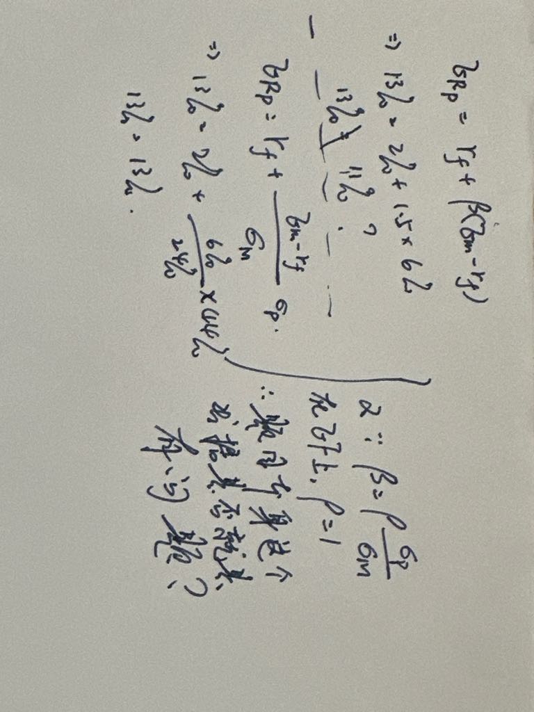 崩溃了,这道题用Betty的portfolio验证了一下,如果正常用SML的算法代入beta会得到不等式,但用CML的方法代入正确!也就是说,题目中给定的beta值是错的!这样的题考试会出现么?