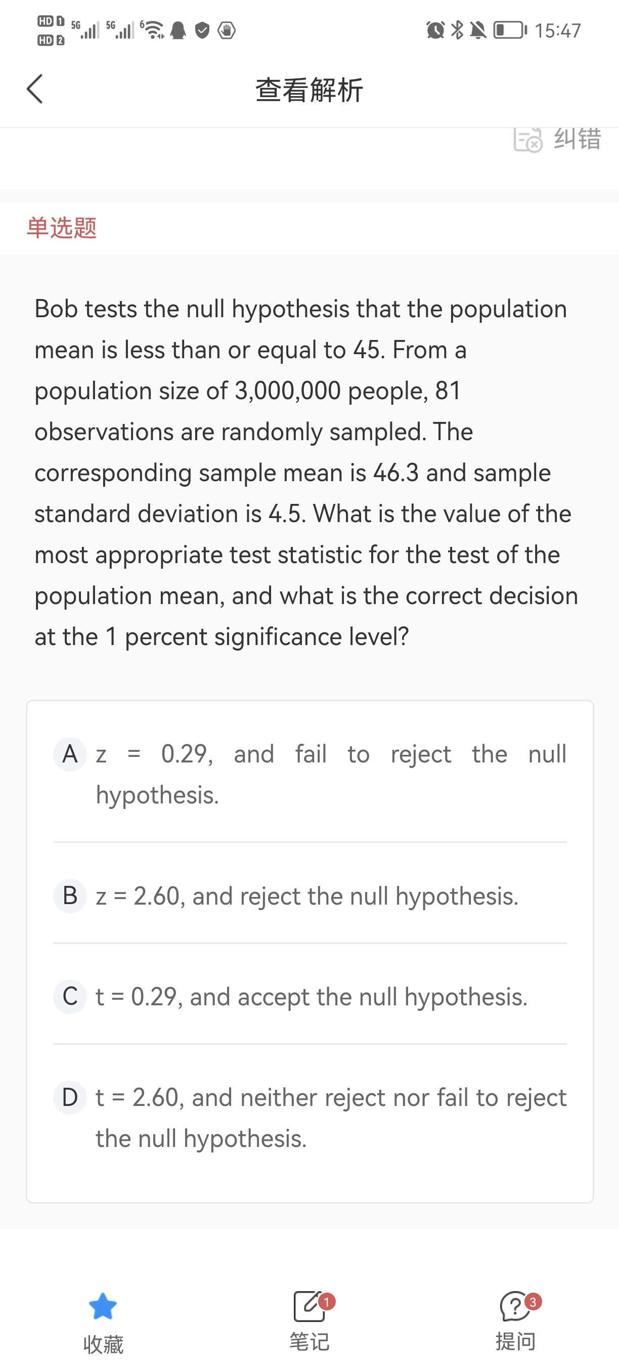 这题既然使用z检验,那检验统计量不是应该不需要除以根号n了吗?为什么不选A?
