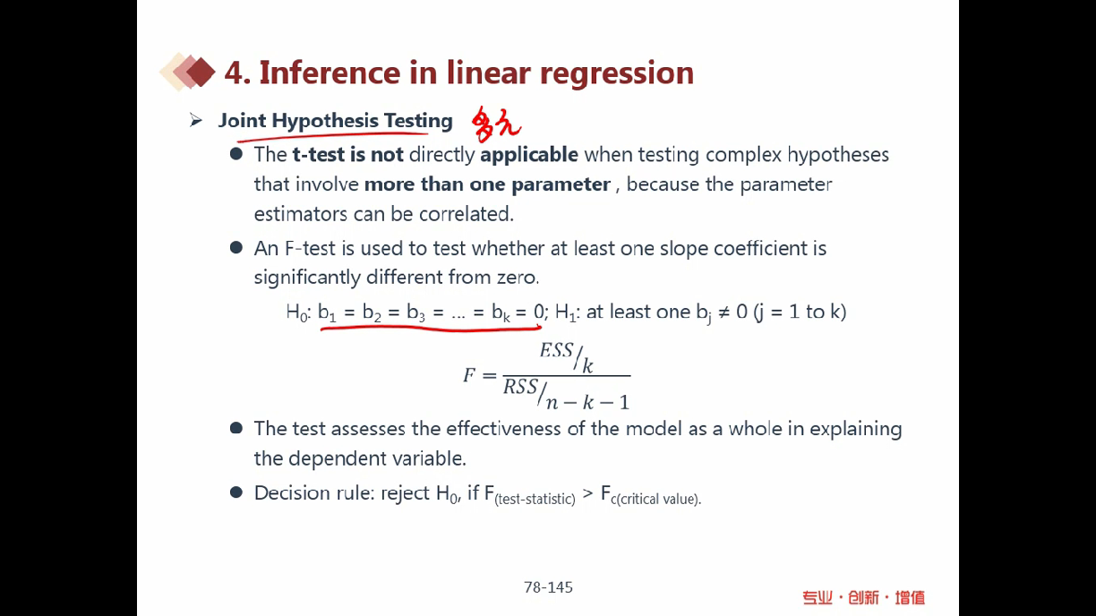 请问这个k查t表的时候,自由度是2还是27?我记得回归方程查表自由度是残差自由度?那什么时候查表是解释变量自由度?另外,这个联合假设检验所查的F表和前面那节课提到的检验方差是否一致的f检验查的表是同一个表吗?