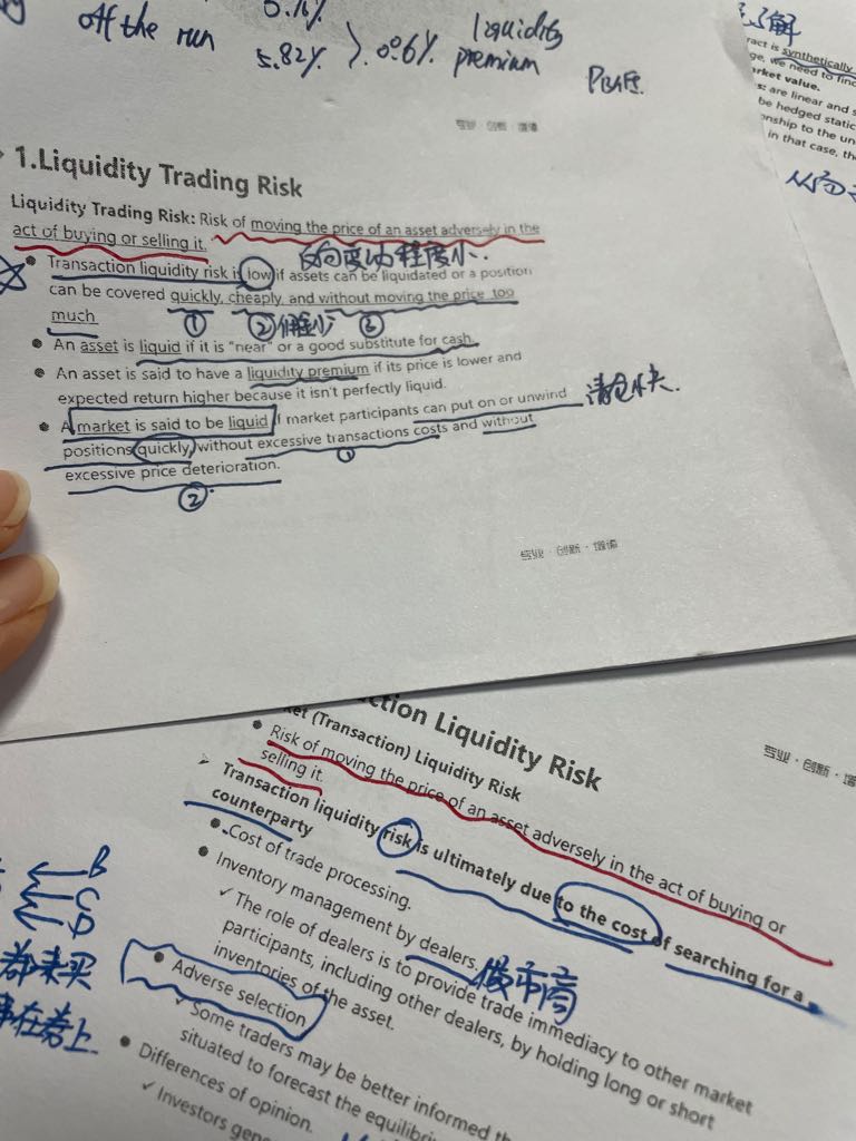 transaction liquidity risk 跟trading liquidity risk有没有从属关系?这两者的研究对象区别在哪儿啊?我看讲义上说的是risk of moving the price adversely in the act of buying or selling.这adversely指的是方向反?