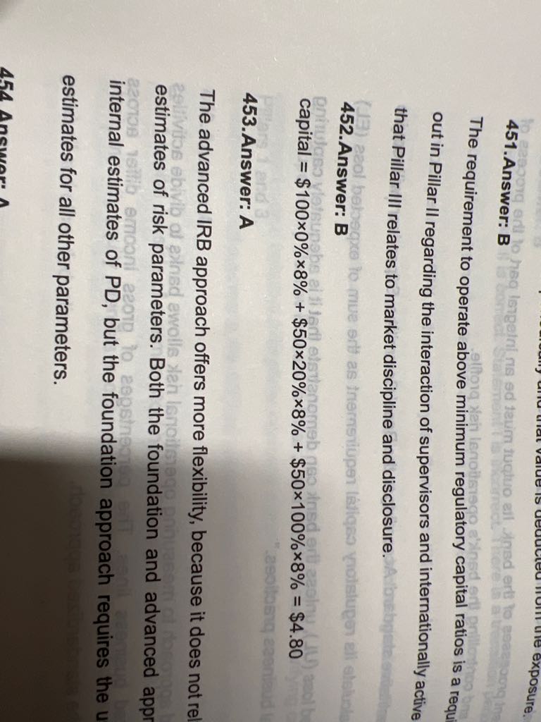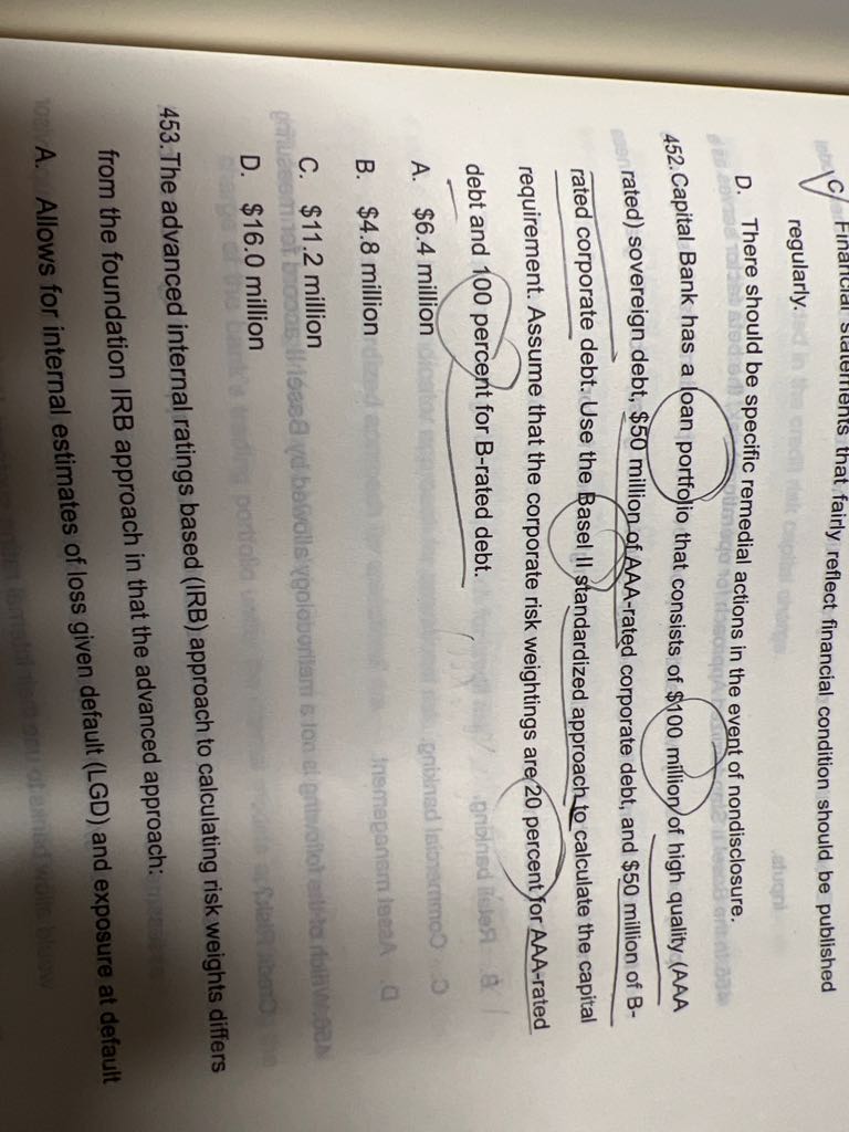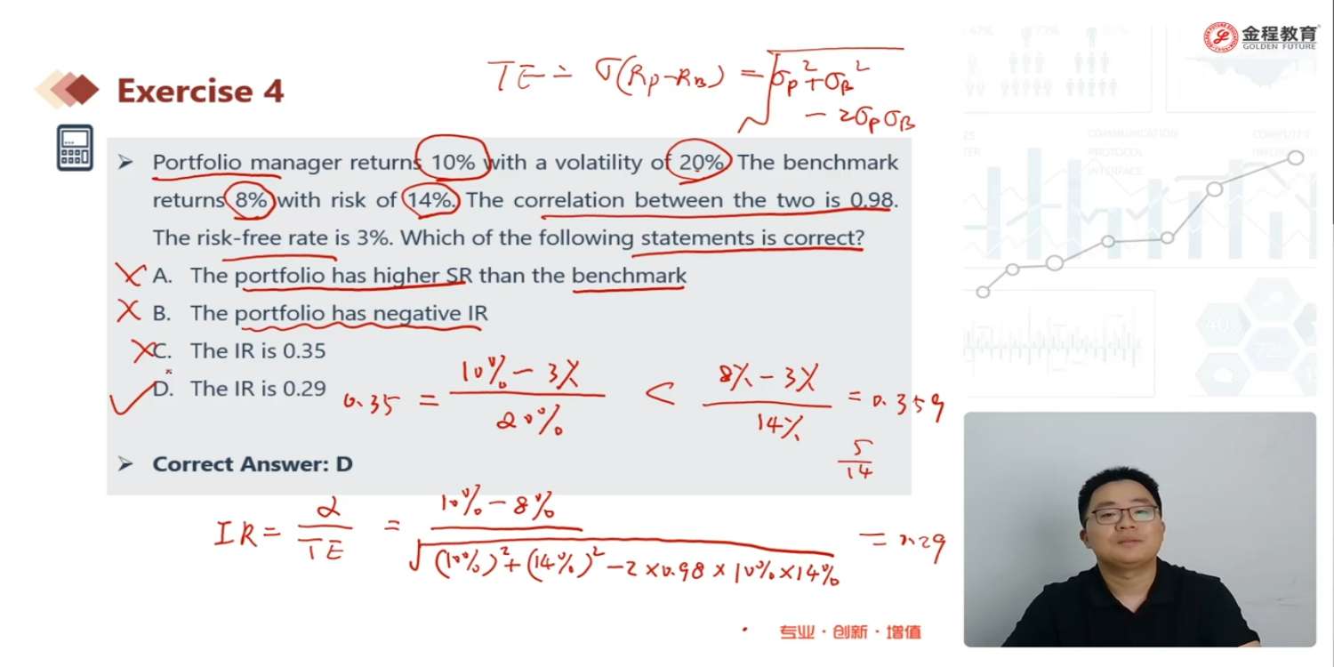对于A选项,ES的值有可能等于VaR的值吧,用always太绝对了吧,这选项应该也是错的吧;对于B选项,印象中根据FRBT,ES能使用的话,应该能通过VaR的回测。这反过来想,其实监管也认同:只要VaR回测通过了,ES也是可接受的吧。 B应该也可以认为对吧?