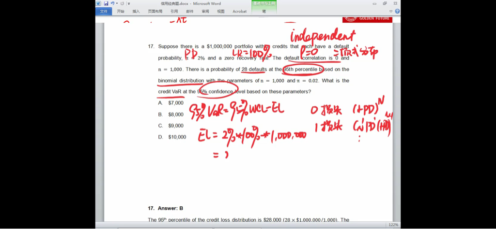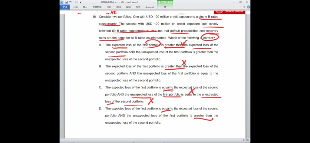 这个题是因为分散化波动率小,所以非预期损失小么?