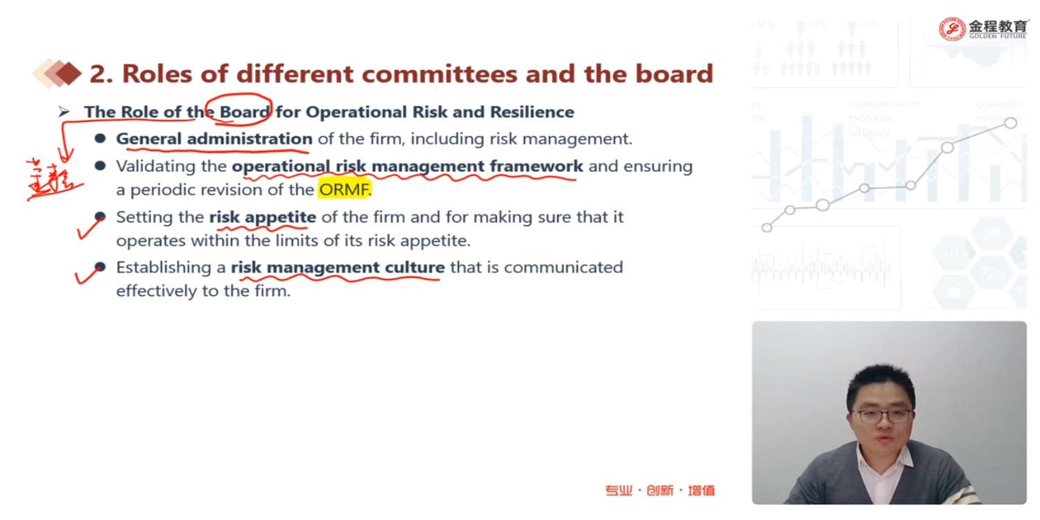 - 不理解这里为什么Risk Chaampions & Business-Line Managers 负责monitor Operational Risk Function Operational Risk Committee 负责act 难道不应该是一线业务人员负责act,然后上一级负责monitor更贴切嘛
