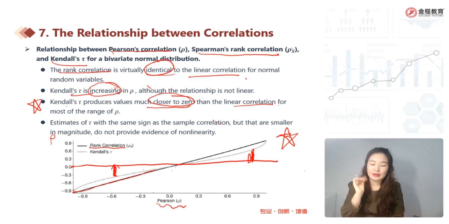 老师,第二条说在非线性,Kendall值增加,第三条又说相比线性数值偏小,有些互相矛盾吧