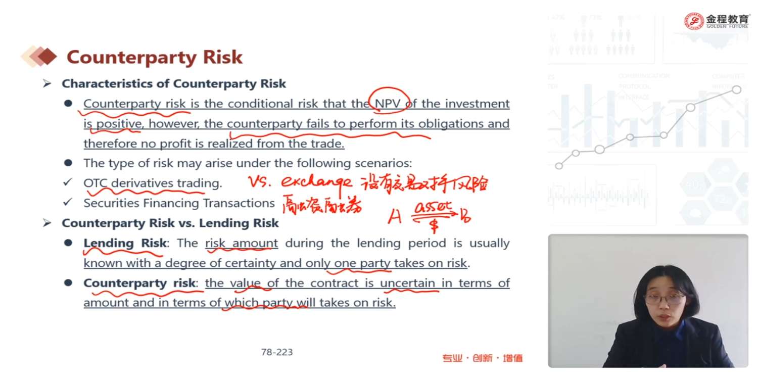 老师好,能否举个lending risk 和 counterparty risk 的例子?前者在何时确定了敞口和对手,后者如何无法确定敞口和对手?后者交易对手应该是可以确定的吧?