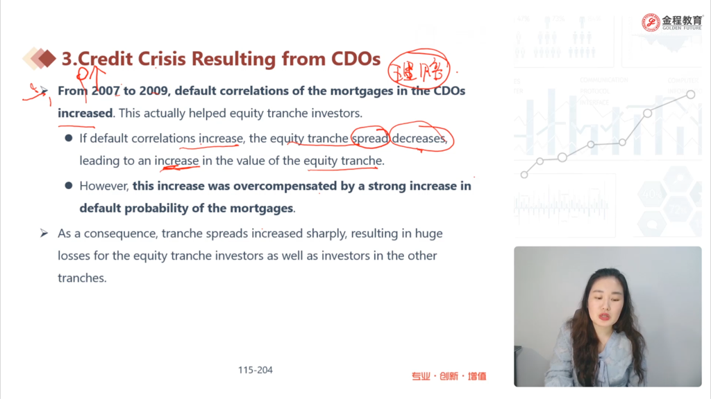 這裡說correlation ↑ equity tranche spread decrease,但最後一句又說tranche spread上升,怎個解釋?equity spread的中文是什麼?