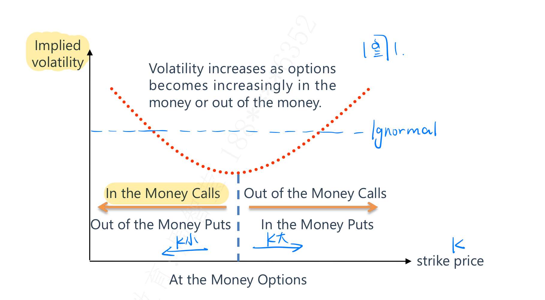 老师,这个题还是没理解,能详细讲一下波动率微笑是怎么产生的吗?还有那个lognormal的线想表达什么意思呢?