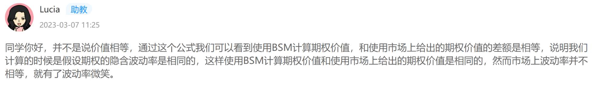 老师,波动率微笑是否与long或short方有关?为什么C不对