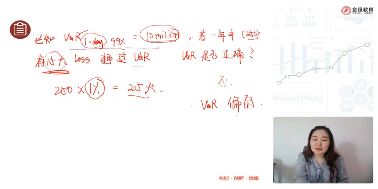 平方根法则只是要求数据IID,不要求必须均值=0,所以这题如果直接按照年化数据算求出年化的VAR ,再整体除以根号252,为什么不对?而且解析里的均值是要除以天数,我有个疑问,年化均值跟一天的均值什么关系?年化均值应该是N多个年来平均下来求到的,但一年内每天的均值顶多是搜集了252天的算了个平均数,所以这个不应该除以天数吧?