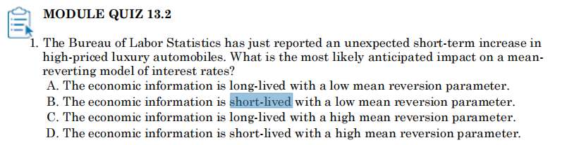 一级讲的long-run mean是b0/(1-b1)也就是0.215/(1-0.75),这个和题干里的长期均值有什么区别呢?