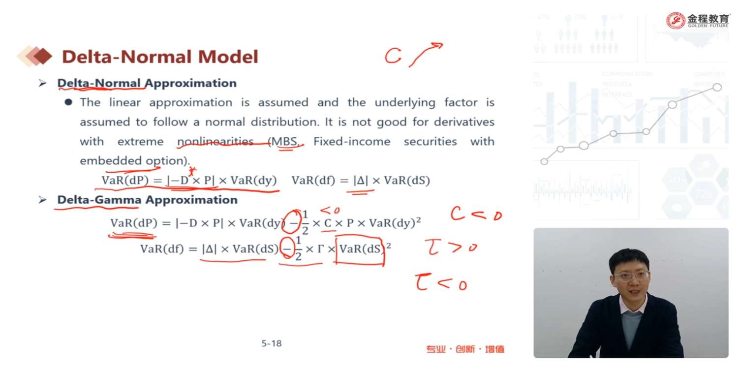 老师,第一:还是不明白为什么是负号?可否详细解释一下。第二按照视频中讲可赎回债券c小于0,风险Var变大,可是可赎回债券不是可以缓释风险的吗?应该风险变小啊
