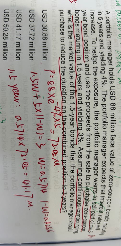 老师,这道题卖出5年债券久期不应该是-5吗?为什么在计算权重✖️久期加总的时候符号为正