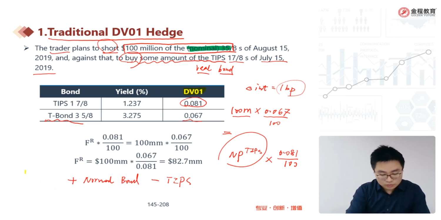 请教老师,在这里为什么0.081要除以100呢?0.081它表示的含义不就是 变化1个bp,债权价格变化多少钱嘛,谢谢