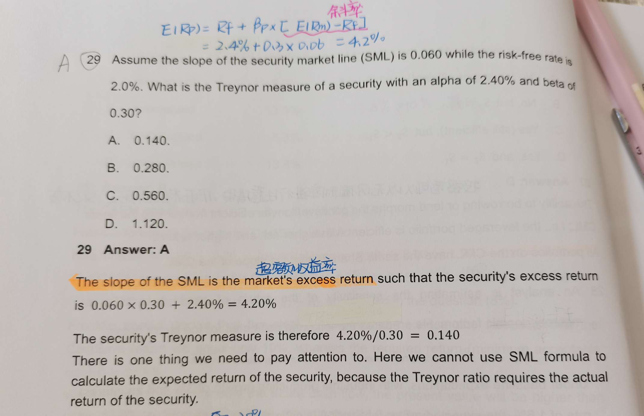 Treynor ratio的分子不是E(R)-Rf吗,为什么这里直接用E(R)=4.2%