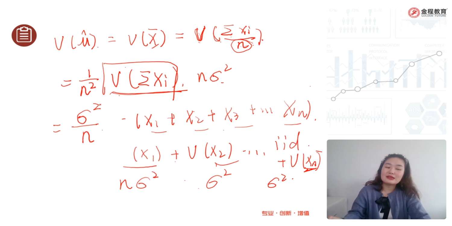 这里的V(X1+X2+X3....+Xn)里面的X1,X2...Xn为什么是服从独立同分布,服从独立同分布不是概率论中对随机变量而言的吗,但是这个方差公式的推导里X1,X2,X3....Xn应该是统计学中抽样样本里的个体数据,不是随机变量啊。