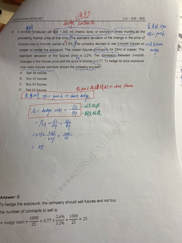 47题,1.这里N的符号是正数,是表示和标地资产同方向操作吗?标地资产是sell,那么futures还是sell?2.如果N算出来是负数呢?