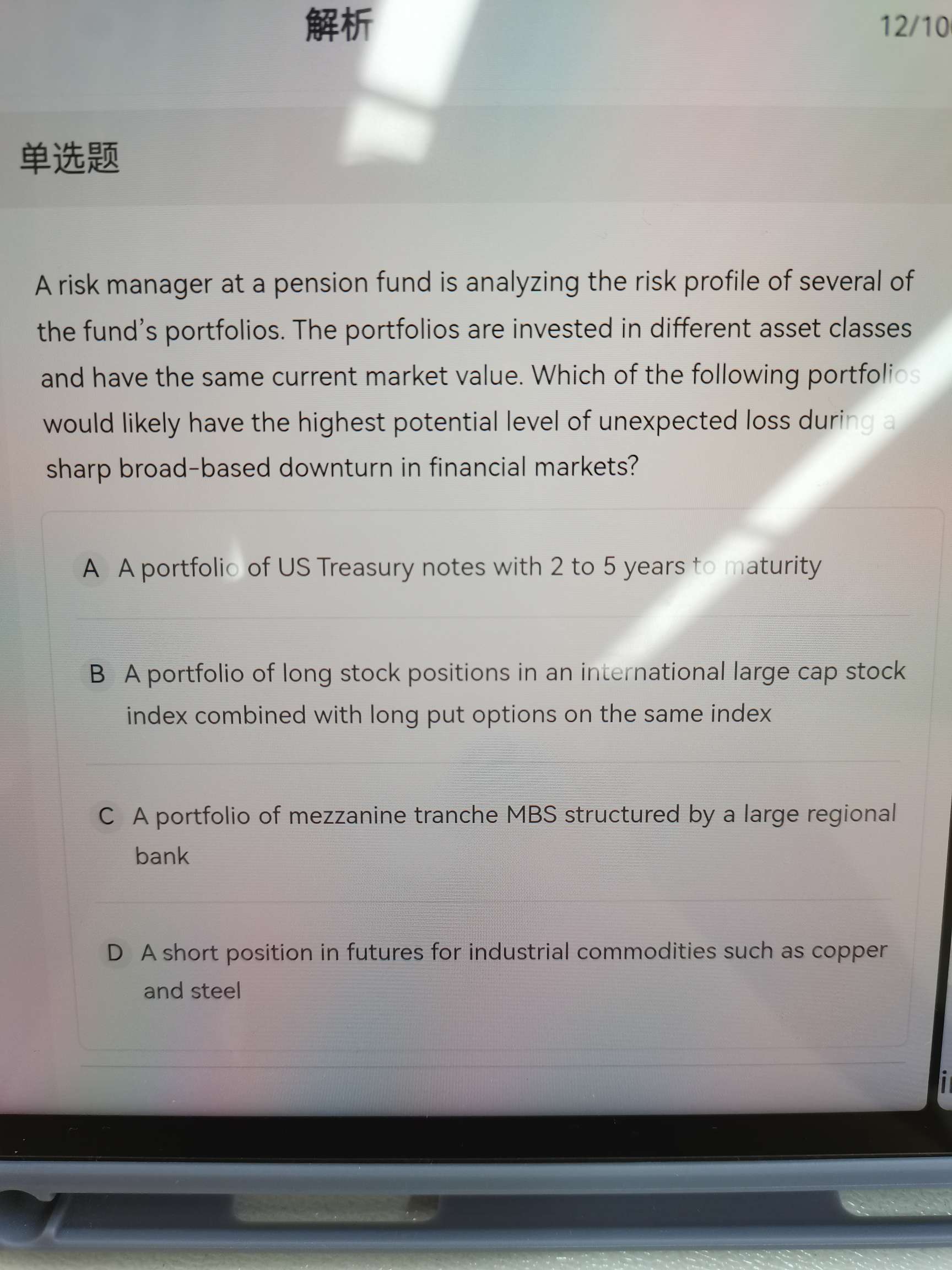 A选项为什么错了呢?持有更多流动性资产,虽然risk大,但是return也高呀,为什么一定要调低在portfolio中的比重呢?有说过这个portfolio是为了liquidity risk min?