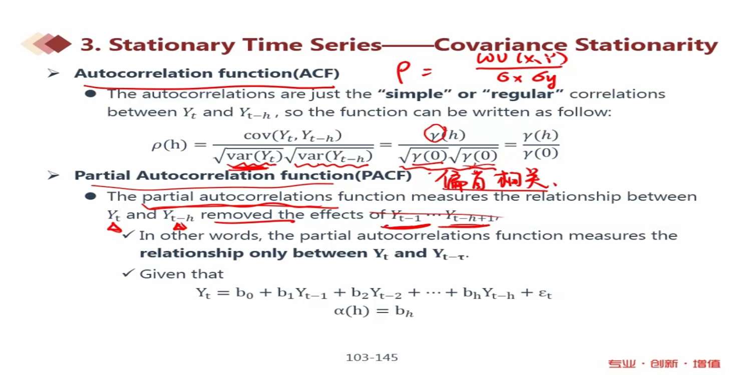 老师说偏自相关系数是yt和yt-h的关系,那自相关系数是yt和yt-1的关系吗?