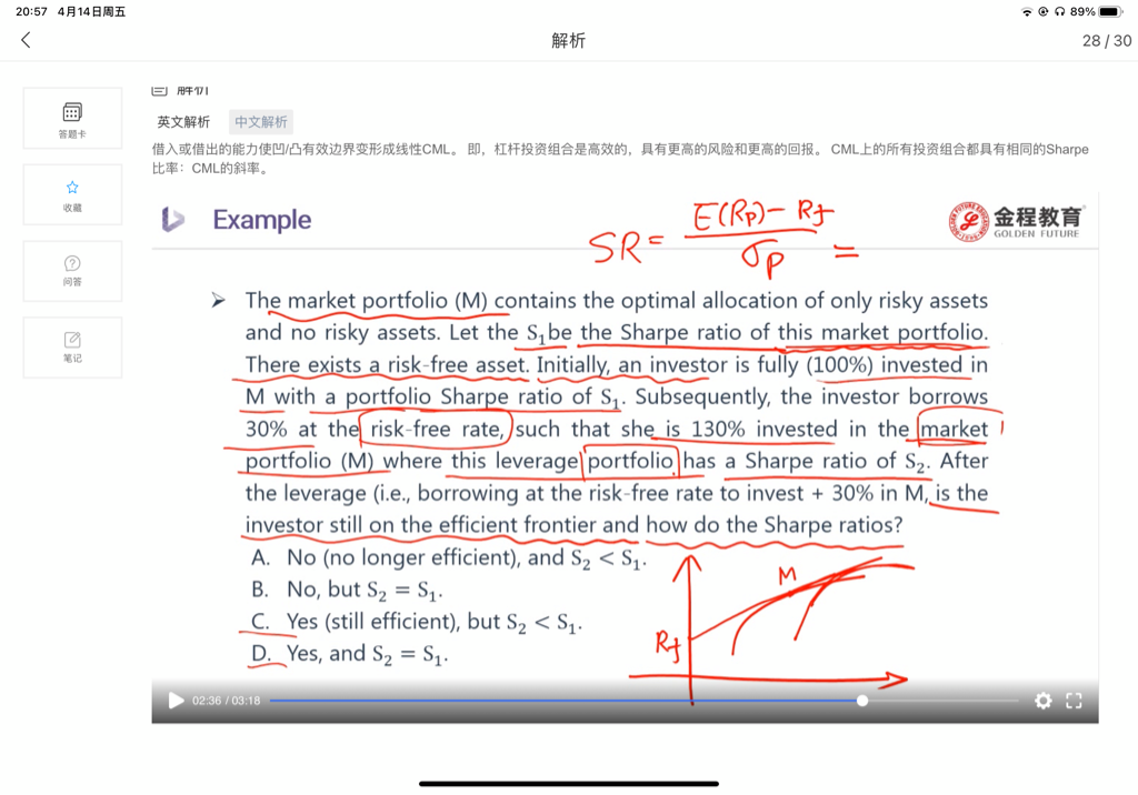 请问老师为什么还可以有第二条有效前沿呢?我们不应该认定是只有一种market portfolio吗?怎么可以根据你投资的组合在画出来一条有效前沿呢?