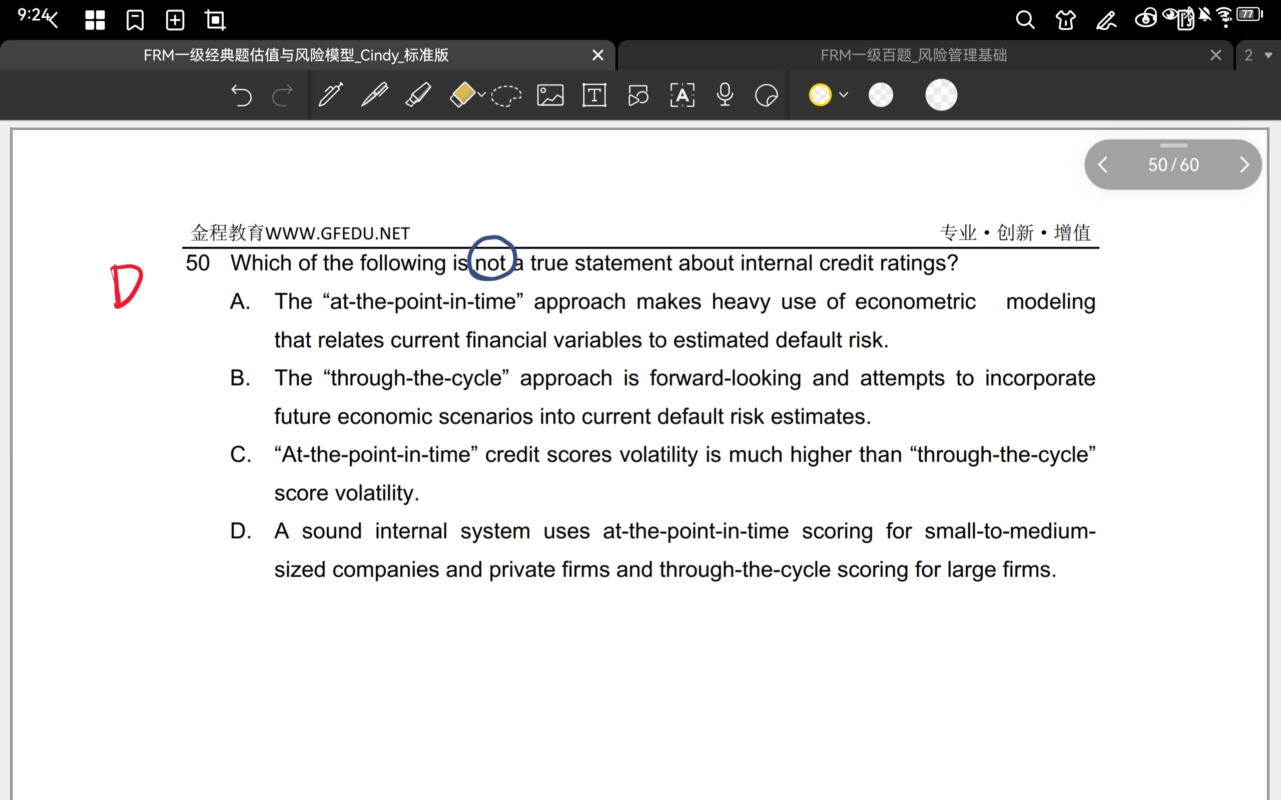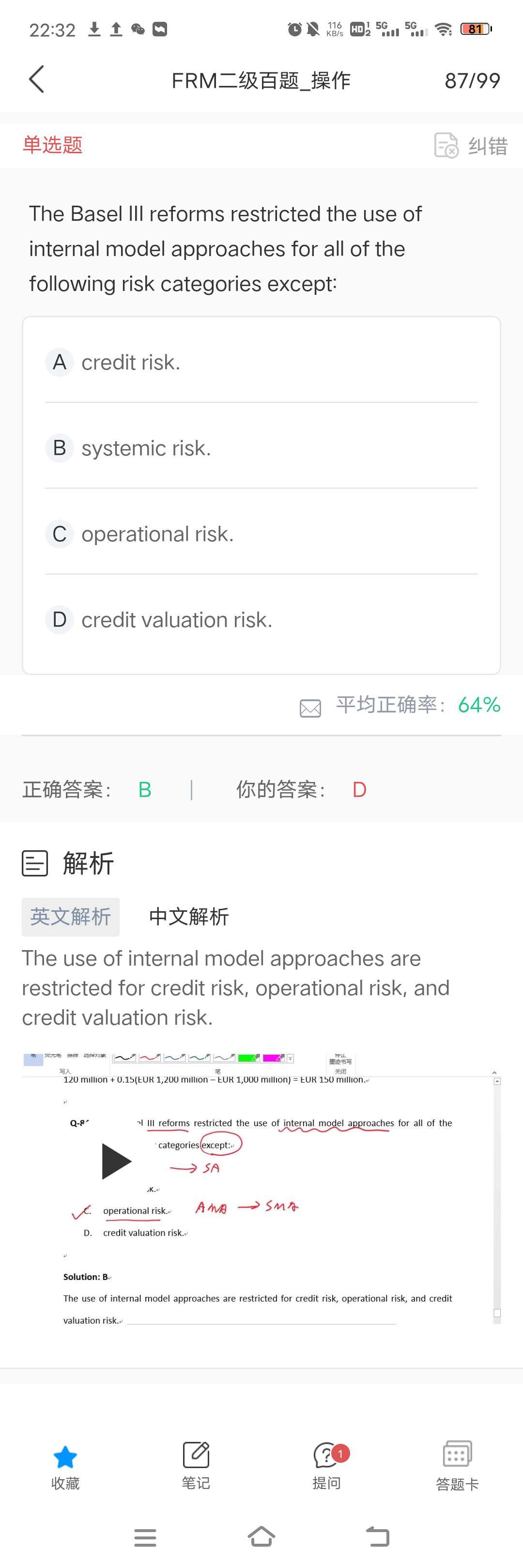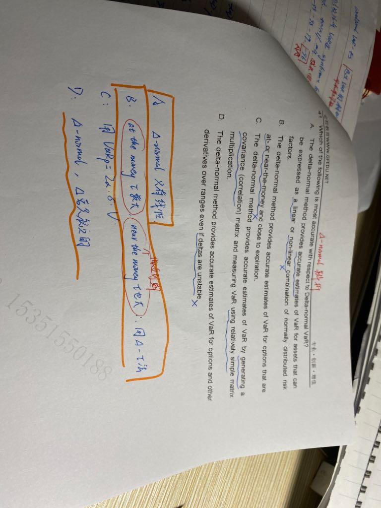 请问老师,操作百题第87题的选项d在讲义里没有找到同样的表述,这是CVA?