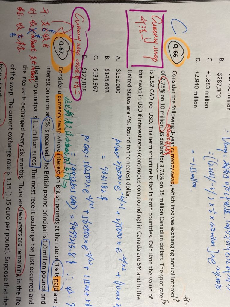 66题,第一句话:收CAD interest,那么最后也应该是收CAD支USD,结果为什么不是-131968呢?