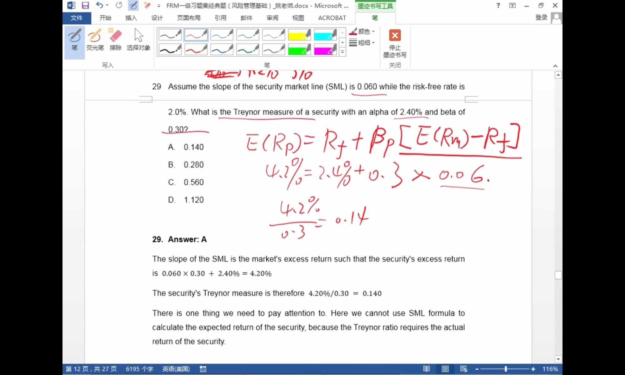 为什么计算TR,分子不是E(Rp)-Rf?题目直接分子是E(Rp)
